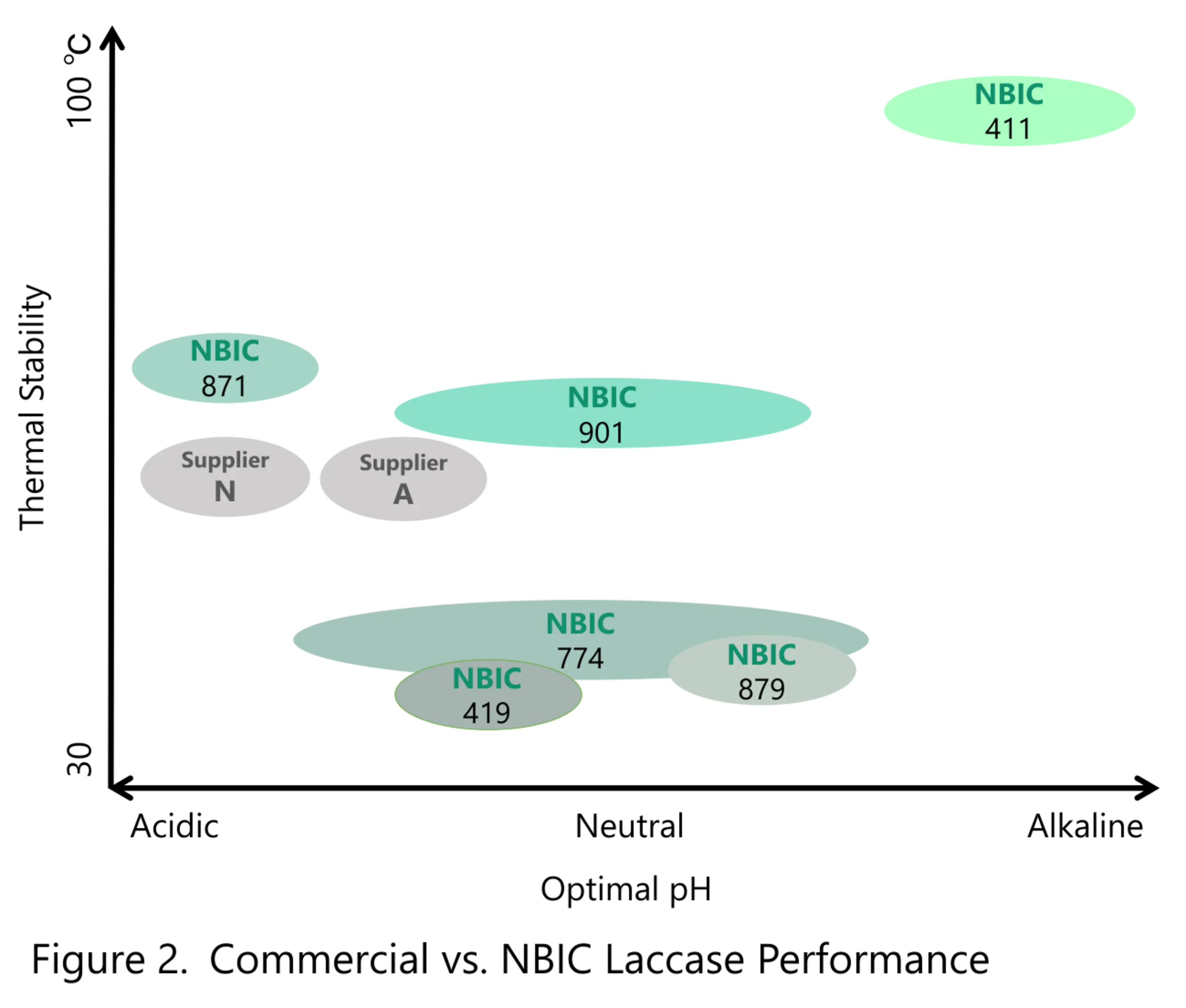 to develop novel laccases. Interestingly, even within the same genus, laccases exhibit completely different characteristics. Their optimal pH ranges from acidic to strongly alkaline, and their heat tolerance varies from 40°C up to 95°C, demonstrating remarkable diversity (Figure 2).