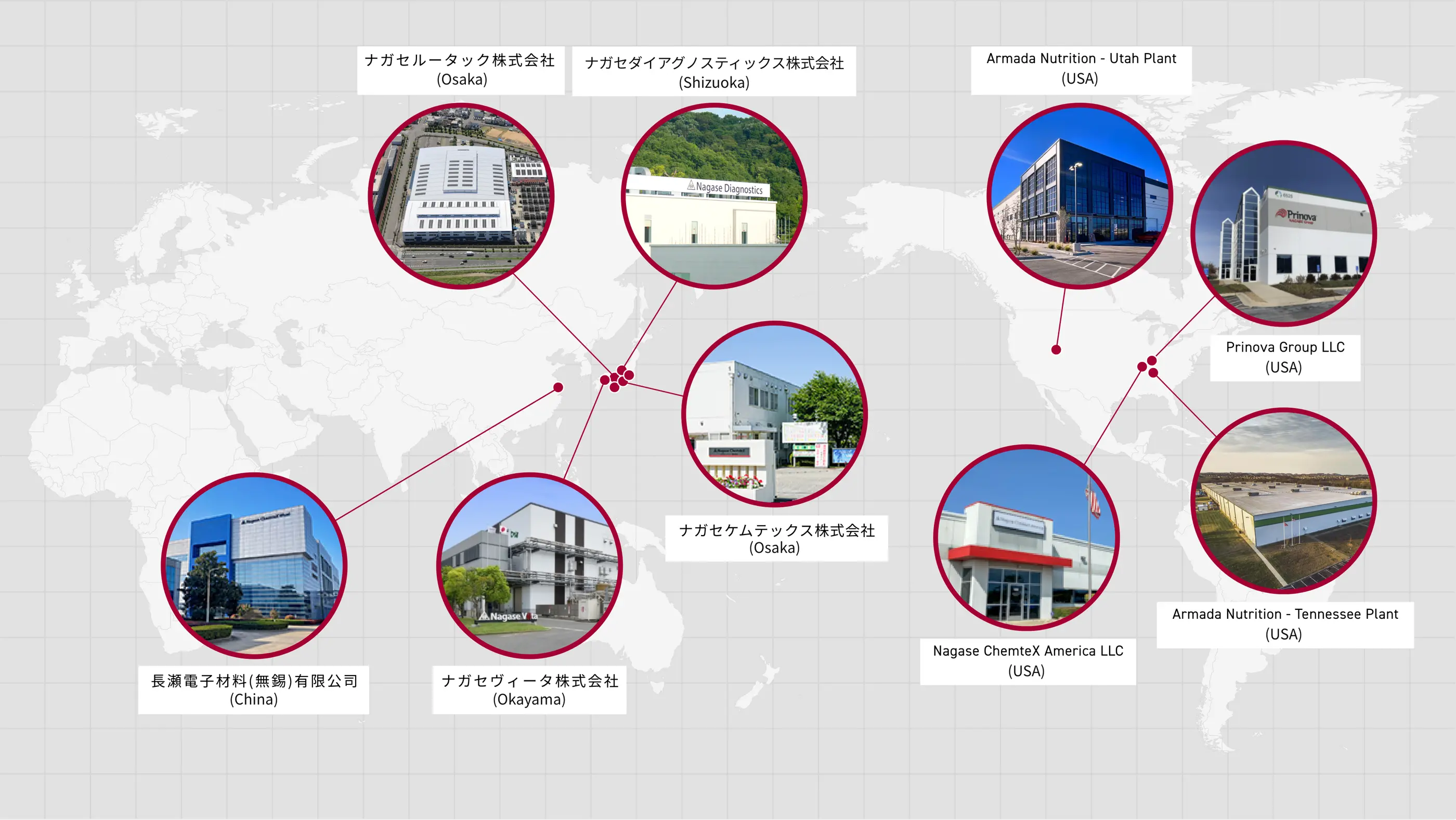 ※ NAGASEグループサイトでは主要関係会社・拠点のみ掲載。すべての関連会社、拠点情報は長瀬産業IRサイトをご覧ください