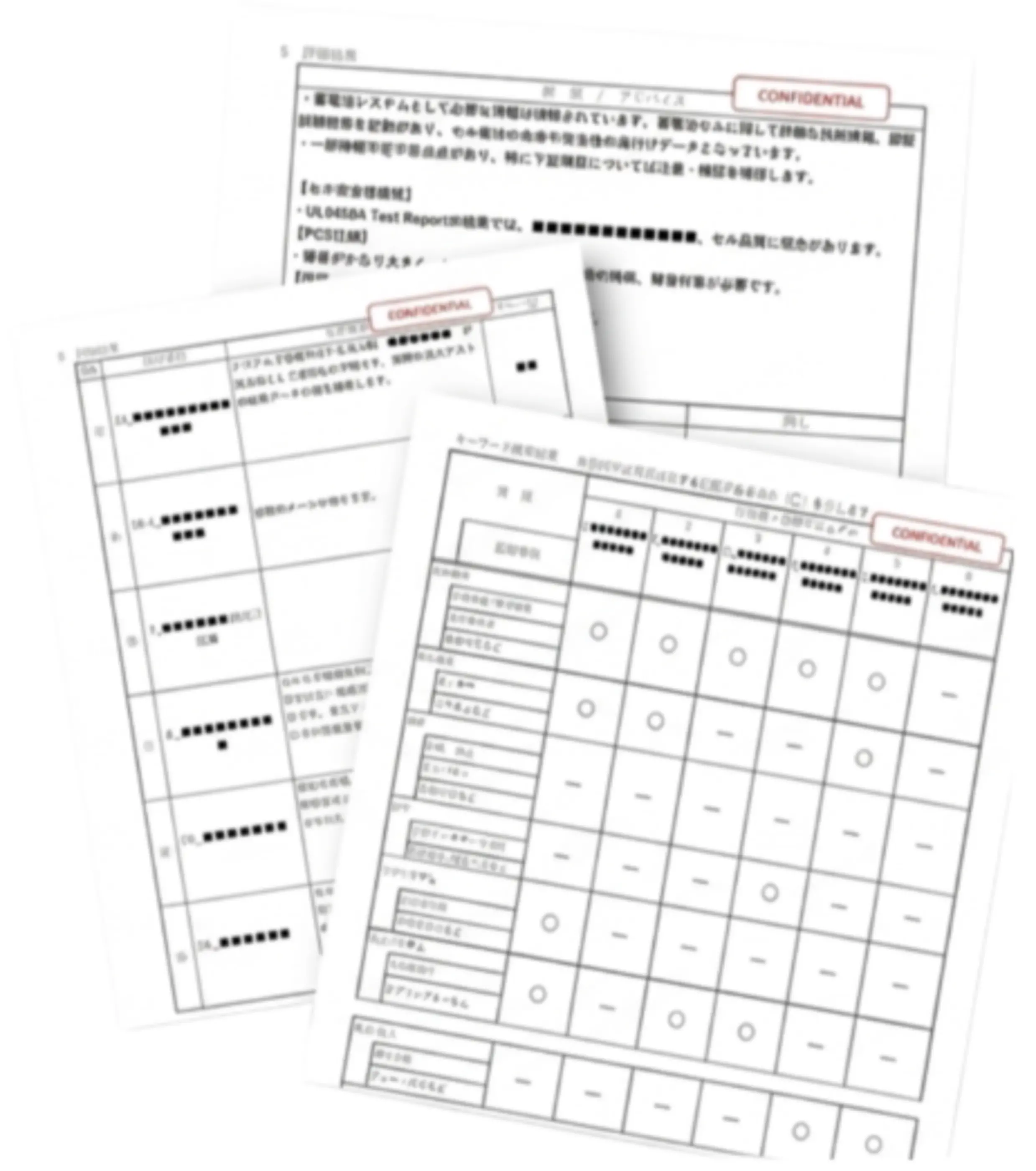 ・ドキュメント精査:蓄電池メーカー資料、品質、保証内容等の精査、問題点の抽出(仕様書、取扱説明書、保守マニュアル等)