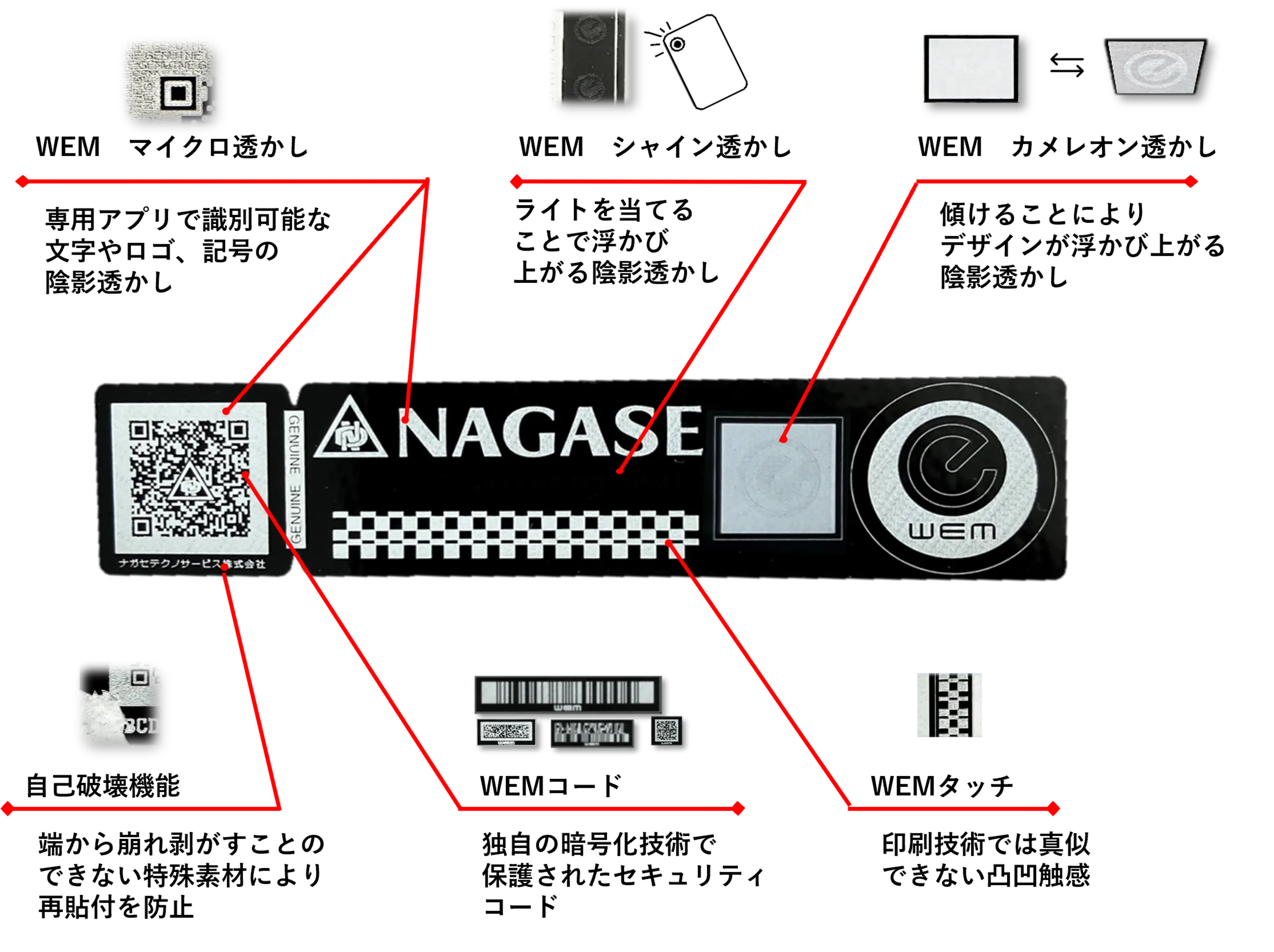 WEM® Technologyは、株式会社ユーロックテクノパーツが特許を所有する微細レーザー透かし刻印による偽造防止技術です。