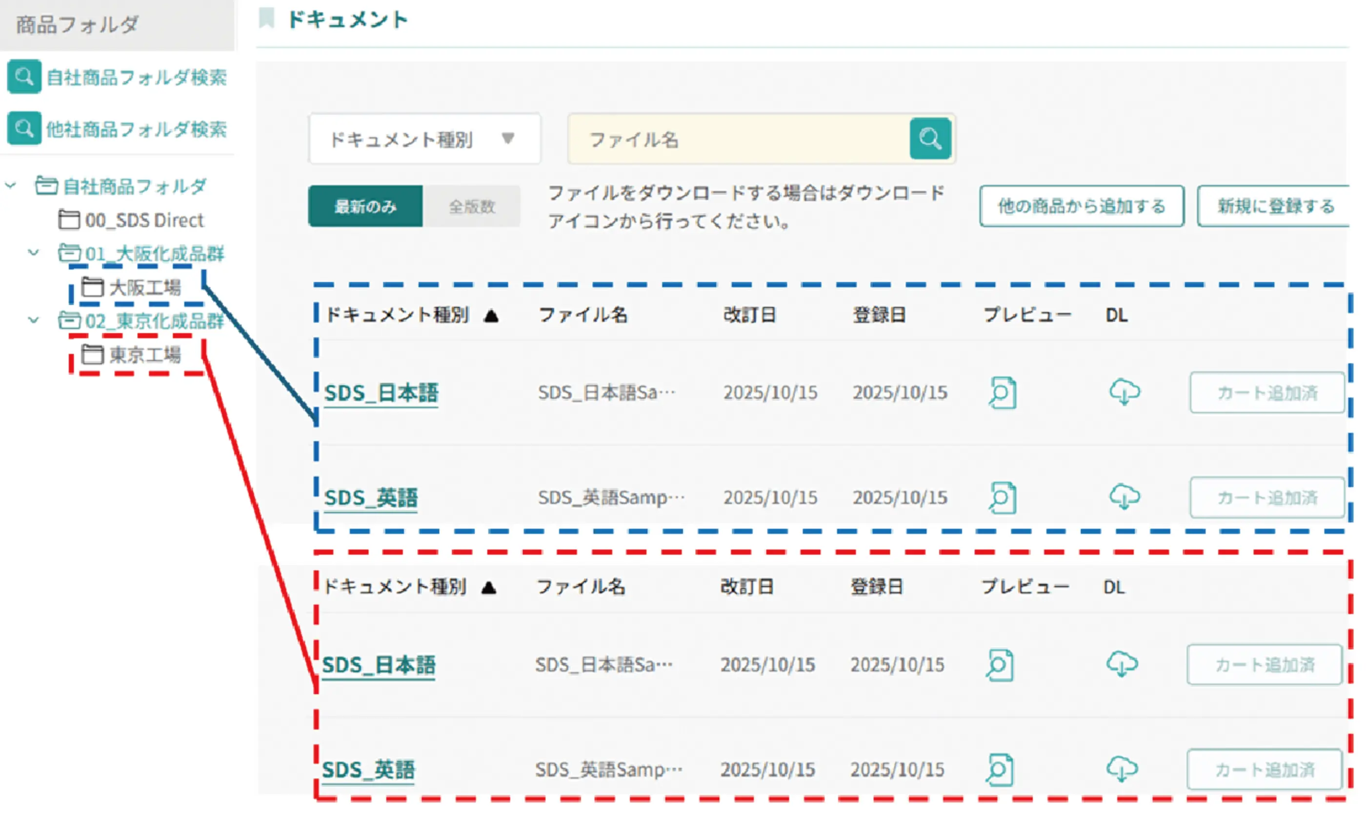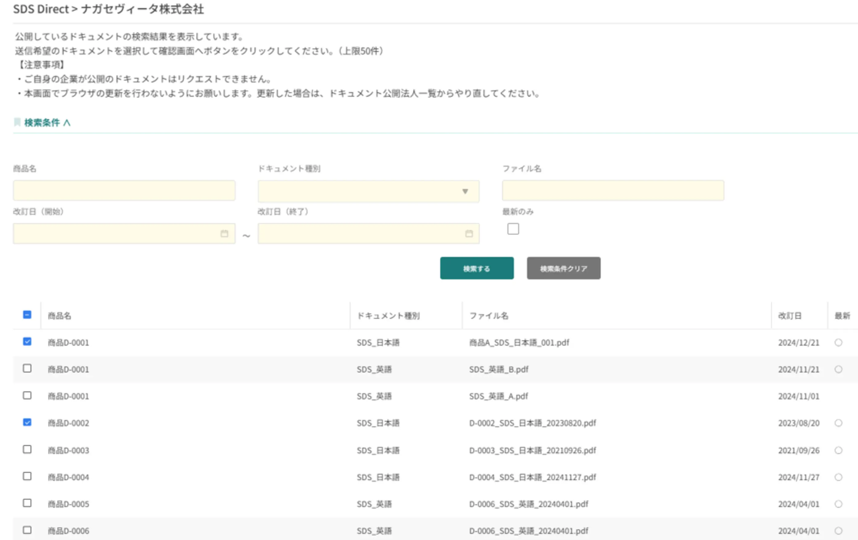 - 自社ドキュメント(SDS・CFP・分析表など)の外部公開機能