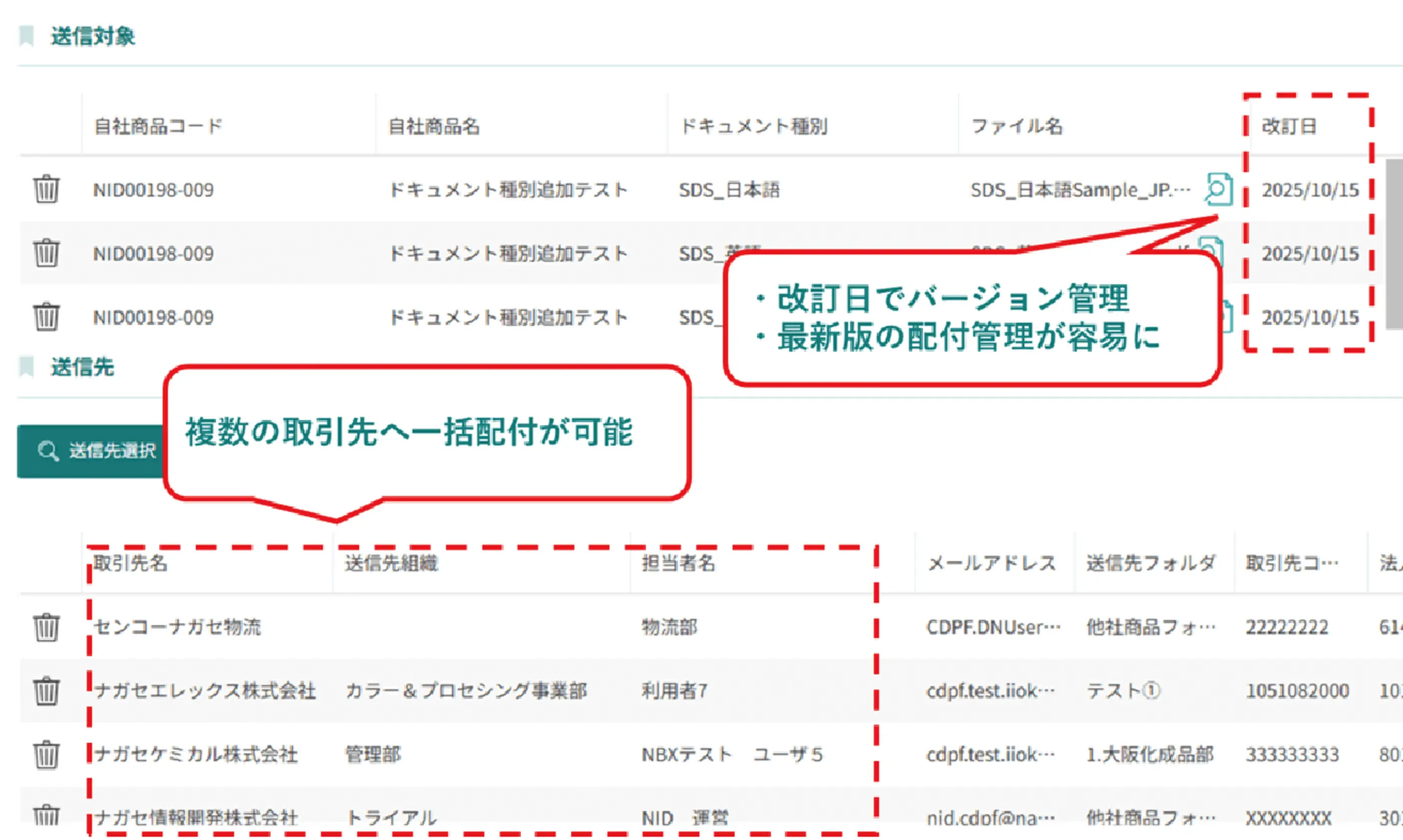 - 誰が、いつ、どのバージョンを配付したのかが自動記録される仕組み
