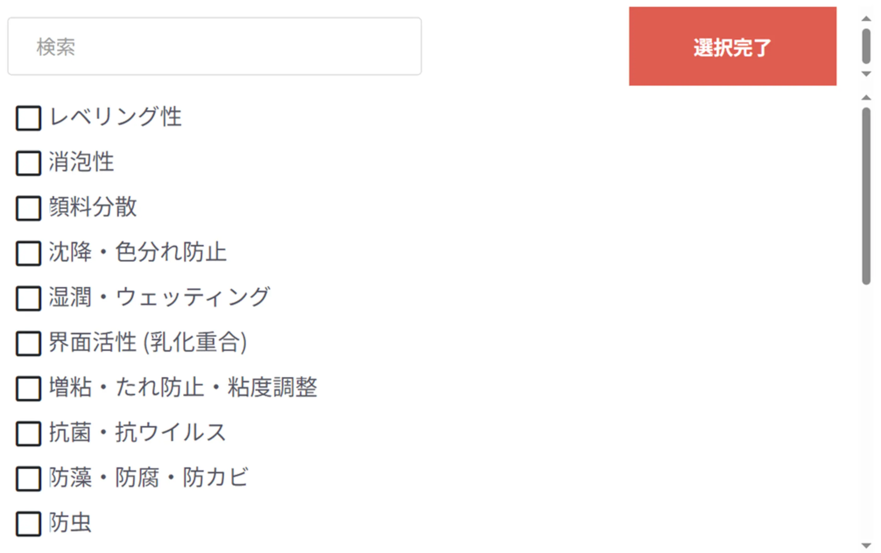 現在はレベリング、消泡、顔料分散、粘度調整等の添加剤探索用のキーワードのみ