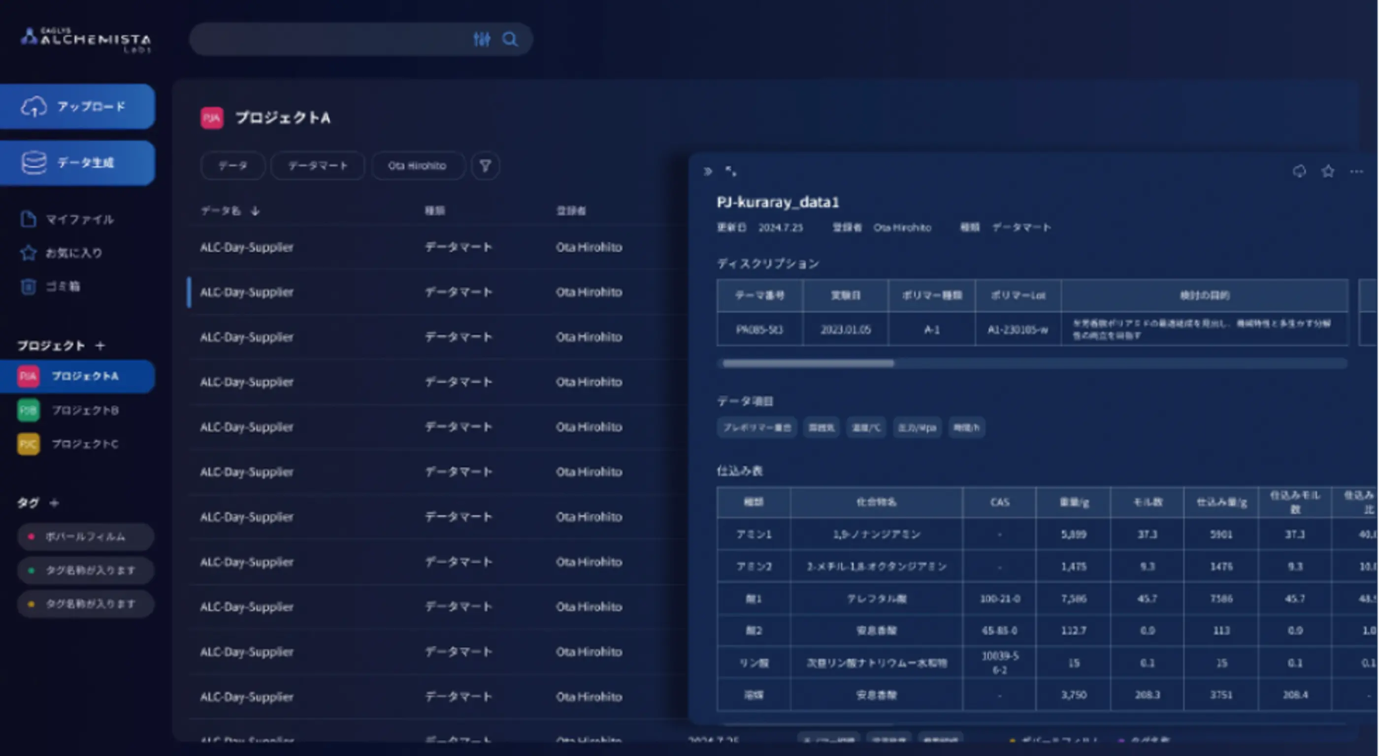 普段使い慣れたフォルダライクな操作をベースに、プロジェクトやテーマ、製品といった単位でのデータ管理を実現します。また、データの統合・結合、外れ値の削除や欠損値のデータ補完など、データ整形にかかわる手間を大幅に削減可能です。お客さまの重要資産である実験データを、使えるデータとして運用可能にします。