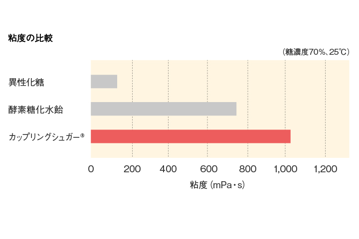 カップリングシュガー® は、適度の粘性を持っており、食品のツヤ出しなどに適しています。