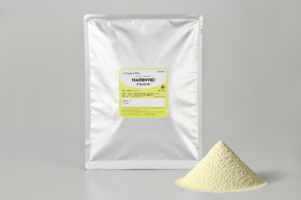 ナリンビッド®は柑橘由来のポリフェノールの一種である「ナリンジン」にナガセヴィータの酵素技術を用いてグルコースを付加し、水溶性を向上させた味質改善素材です。飲料における沈殿というナリンジンの課題を解決し、加工適性を大幅に向上させました。切れの良い苦みを持ち、微量の添加で柑橘感やピール感、生搾り感を付与することができます。また、甘味や雑味の低減、塩味の増強などの味質調整機能を持っています。