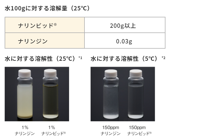 ナリンビッド®はナリンジンに比べて水に高い溶解性を示します。