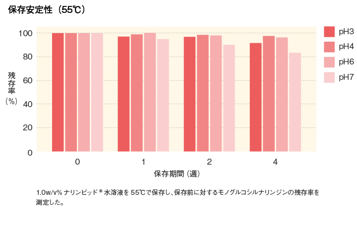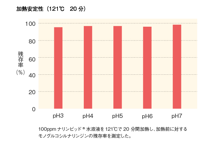 ナリンビッド®は各pHにおいて加熱に対して安定です。