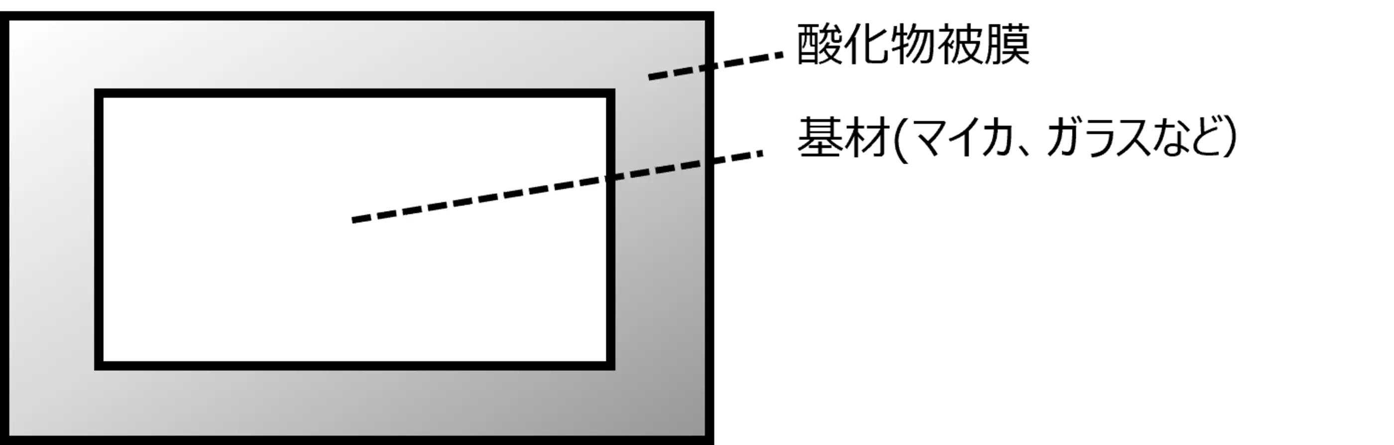 マイカなどの板状基材の表面に酸化チタン等の金属酸化物被膜を形成することで多重反射および干渉効果を生じさせています。